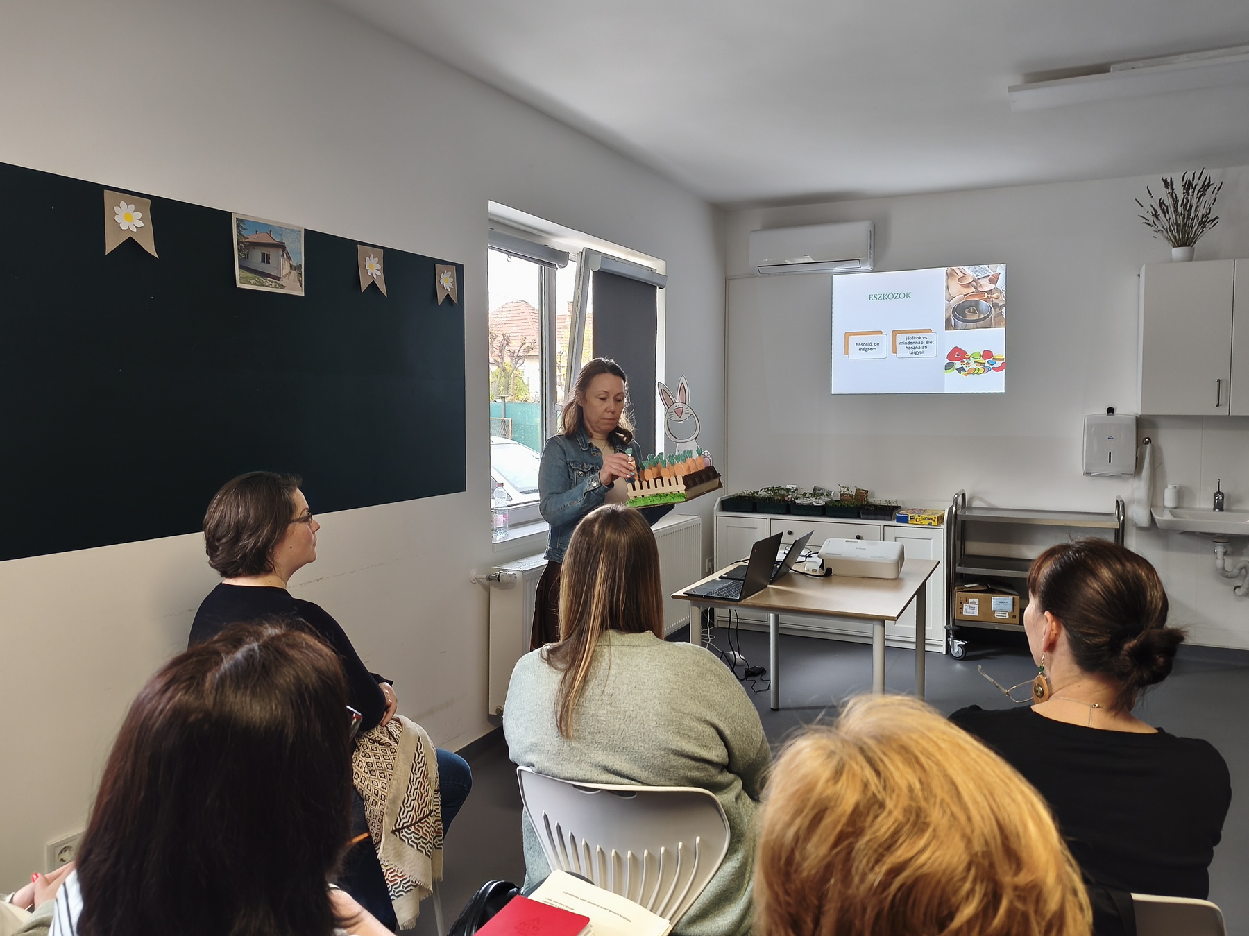 A gyakorlati megvalósítás szintjén külön hangsúlyt kapott a tevékenységalapú fejlesztés. A foglalkozások közötti választás lehetősége, valamint az új tevékenységek bevezetése hozzájárul a tapasztalati horizont tágításához és a sikerélmények megéléséhez. Egy konkrét példán keresztül bemutatásra került a gyertyaöntés folyamata, amely 17 egymásra épülő lépésből áll . Ez a részletezett struktúra jól szemlélteti, hogyan lehet komplex tevékenységeket lebontani olyan egységekre, amelyek különböző képességszinteken is elérhetőek az ellátottak számára. A módszer egyszerre szolgálja a készségfejlesztést, az önállóság növelését és a munkafolyamatok megértését.