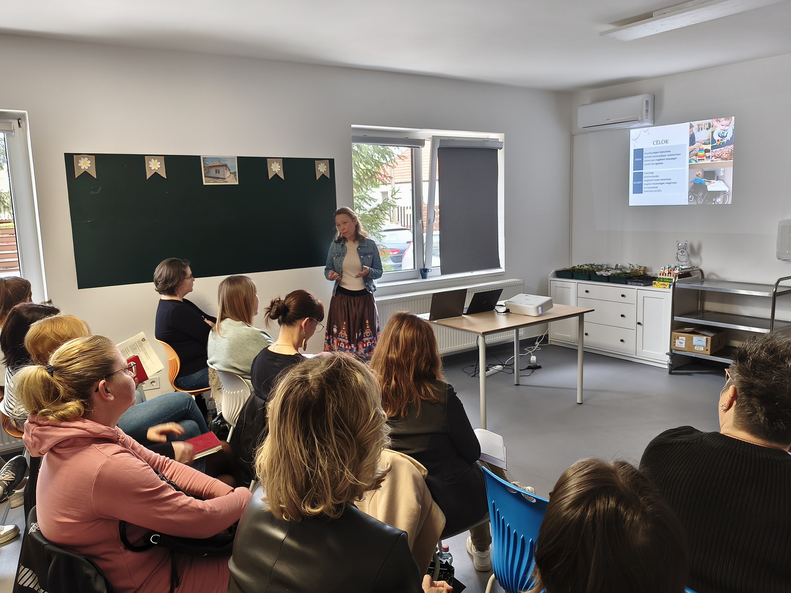 A szakmai nap egyik kulcstémája a korai fejlesztés eszközrendszere és a felnőtt ellátásban működő fejelsztések közötti kapcsolódások vizsgálata volt. A bemutatott szemlélet szerint a két terület közötti folytonosság megteremtése alapvető jelentőségű. A fejlesztési célok, a motiváció fenntartása, valamint az eszközök és módszerek adaptációja mind olyan tényezők, amelyek meghatározzák az ellátott életútját. A környezet szerepe ebben a folyamatban kiemelt: nem csupán fizikai térként, hanem támogató közegként jelenik meg, amely képes erősíteni vagy gyengíteni a fejlődési lehetőségeket . Az előadás egyik fontos üzenete az volt, hogy a fejlesztés nem életkori szakaszokhoz kötött, hanem egy folyamatos, adaptív folyamat.
