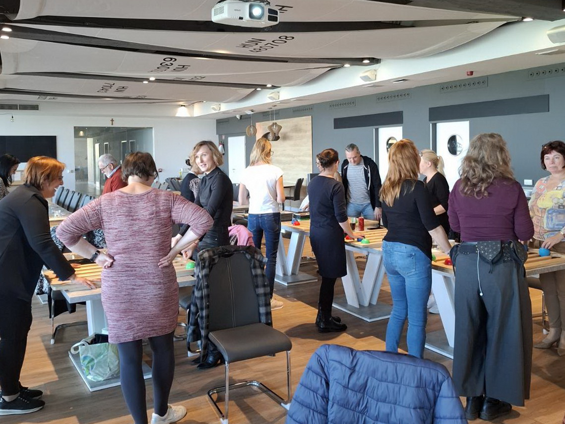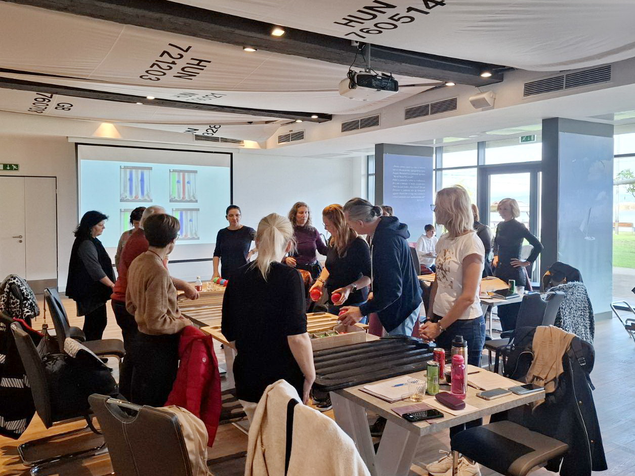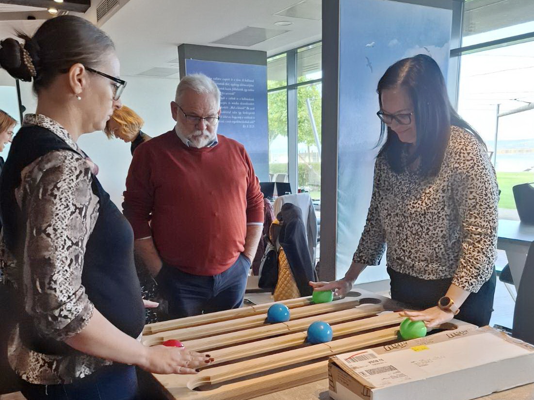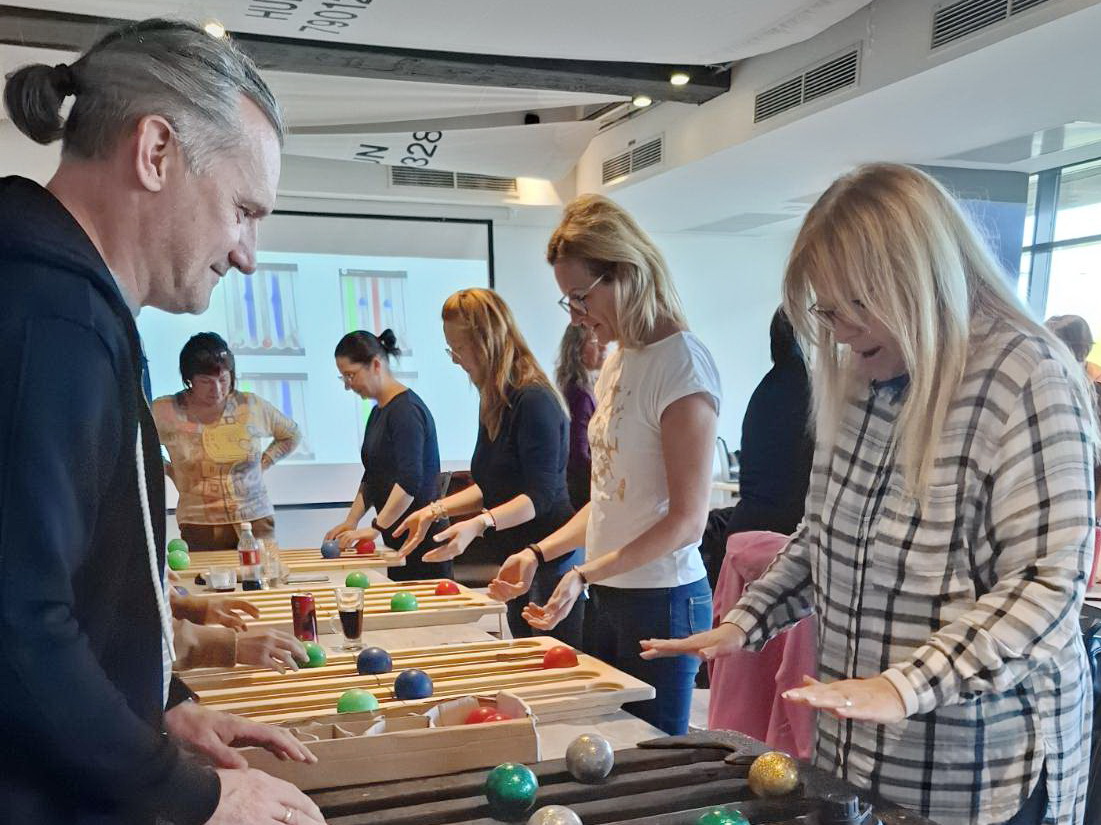 A gárdonyi szakmai nap egyik központi eleme a Juggle Board bemutatása volt. Ez az eszköz első ránézésre egy döntött síkú, rugalmas felület, amelyen kis labdákat kell gurítani, meghatározott mintázat szerint – ám a látszat mögött komoly fejlesztő potenciál rejlik.